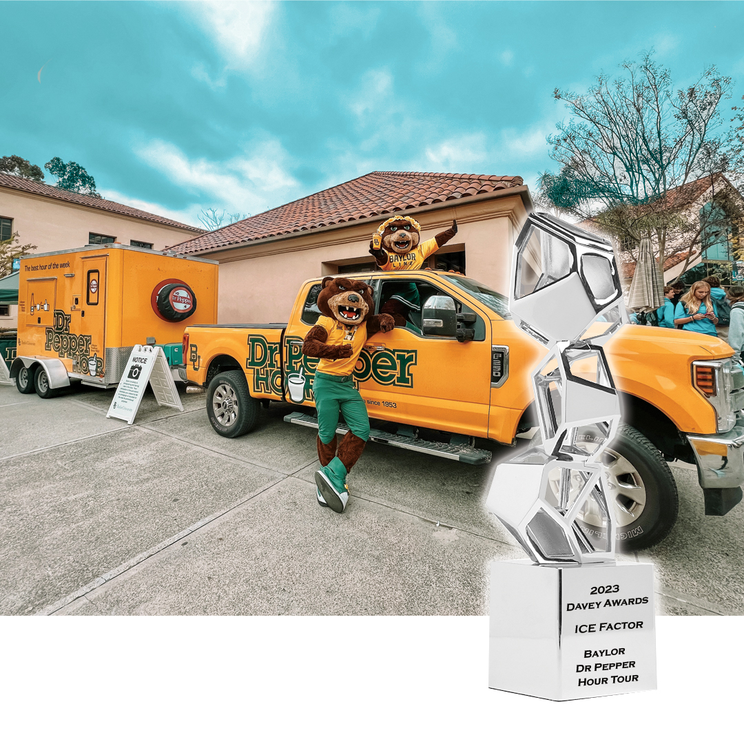 We are thrilled to announce that ICE Factor has been honored with a prestigious Silver Davey Award in the category of 'Integrated Campaign-Recruitment' for our remarkable project, 'Savoring Tradition, Celebrating Success: Baylor's Dr Pepper Hour Tour.' The Davey Awards, known for celebrating brilliant ideas from small teams, received over 2,000 entries from top-tier professionals in the creative industry worldwide. These awards are an international recognition of our commitment to crafting extraordinary brand experiences, and we're proud to be among the select 20% of entries chosen as Gold and Silver Winners. Thank you for celebrating this achievement with us, and we look forward to continued creative excellence.